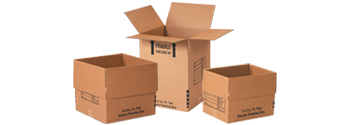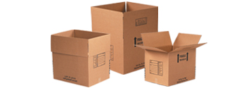 Variety of packing boxes with special "flap tabs" that hold flaps down while packing.